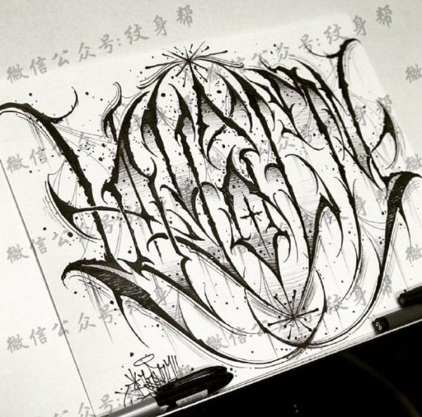 花体字手稿_一组17张优秀的花体字纹身手稿图案