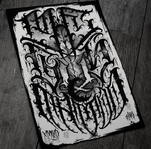 花体字手稿_一组17张优秀的花体字纹身手稿图案