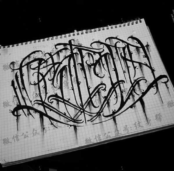 花体字手稿_一组17张优秀的花体字纹身手稿图案