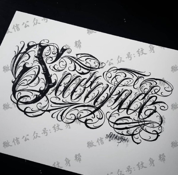 花体字手稿_一组17张优秀的花体字纹身手稿图案