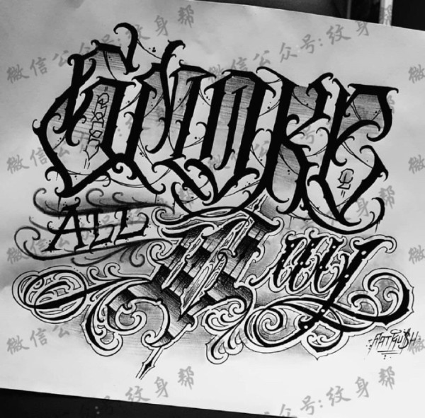 花体字手稿_一组17张优秀的花体字纹身手稿图案