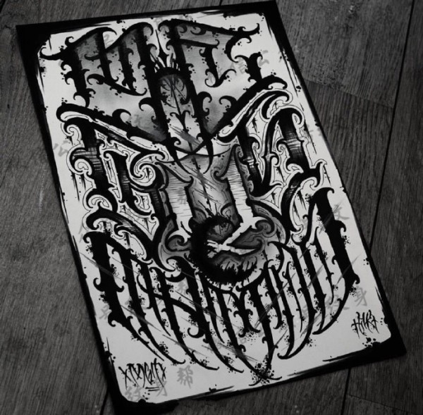 花体字手稿_一组17张优秀的花体字纹身手稿图案