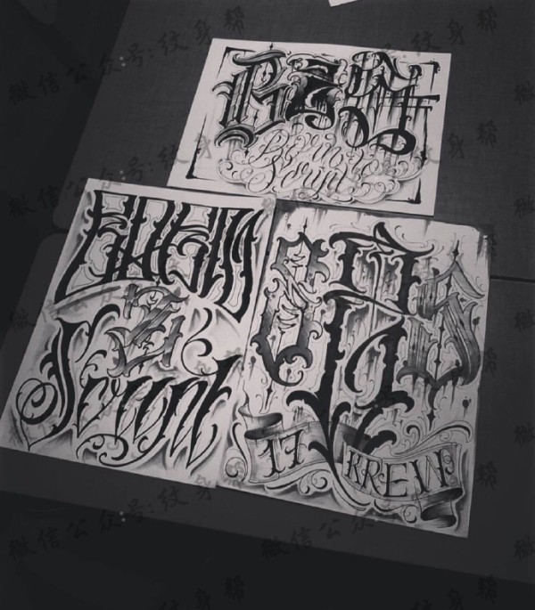 花体字手稿_一组17张优秀的花体字纹身手稿图案