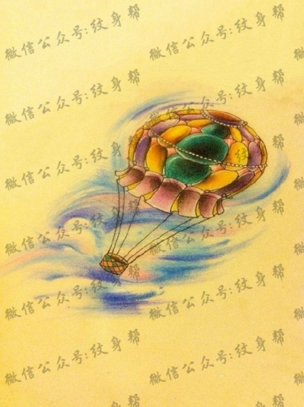 热气球纹身手稿_一组热气球手稿纹身图案