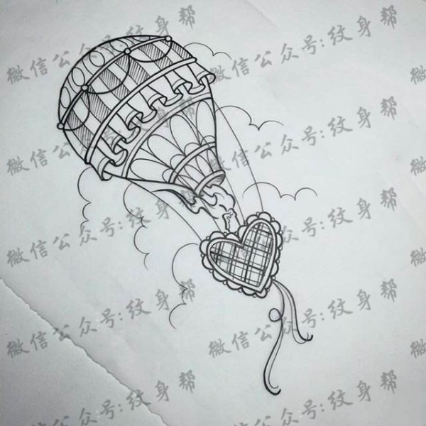 热气球纹身手稿_一组热气球手稿纹身图案