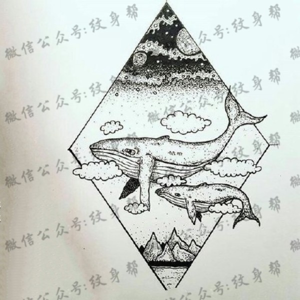 鲸鱼手稿_一套39张精美鲸鱼纹身手稿图案素材