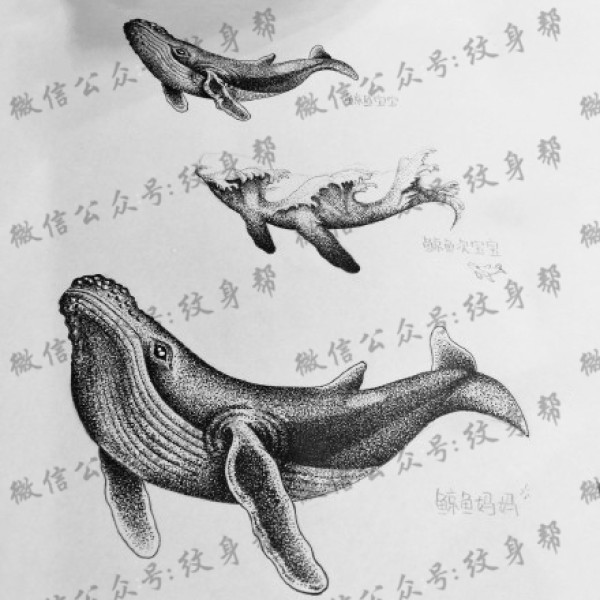 鲸鱼手稿_一套39张精美鲸鱼纹身手稿图案素材