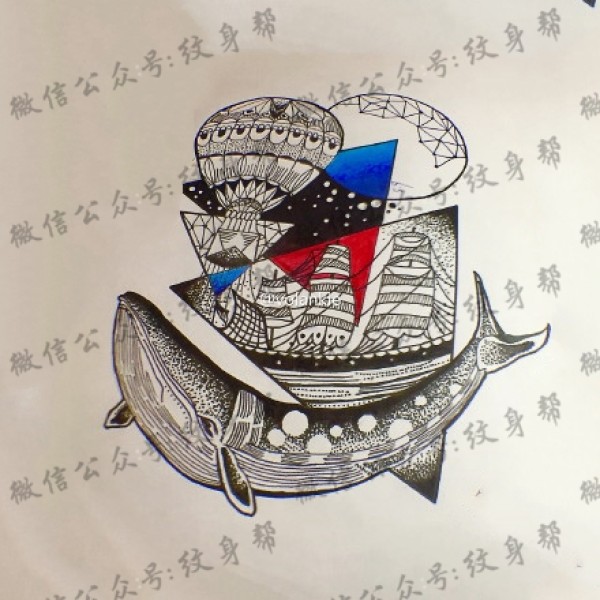 鲸鱼手稿_一套39张精美鲸鱼纹身手稿图案素材