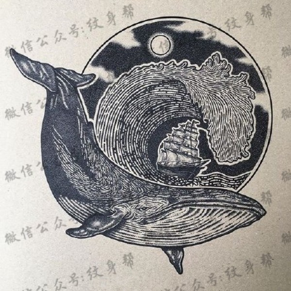 鲸鱼手稿_一套39张精美鲸鱼纹身手稿图案素材