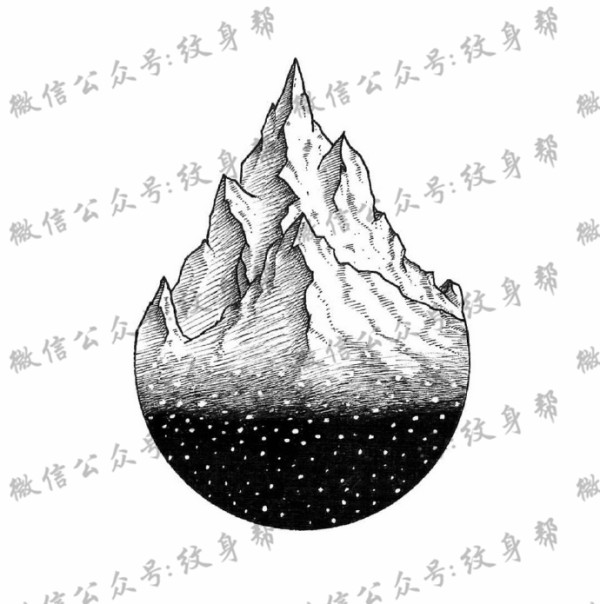 山脉纹身手稿_一组18张几何元素+山脉风景纹身手稿图案