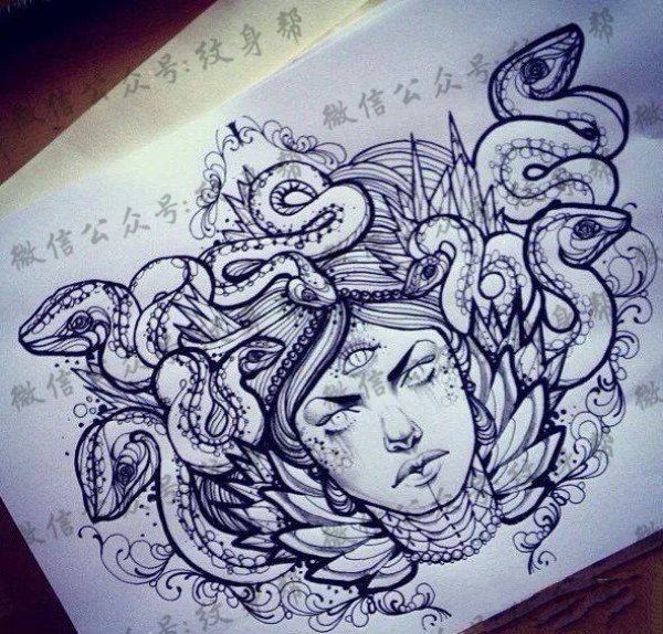 美杜莎纹身手稿_一组15张蛇发美杜莎纹身手稿图案