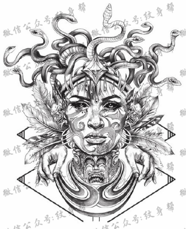 美杜莎纹身手稿_一组15张蛇发美杜莎纹身手稿图案