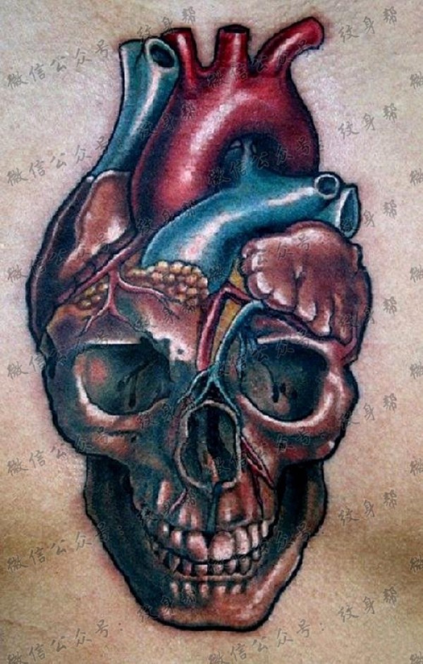 个性骷髅心脏纹身手稿图案
