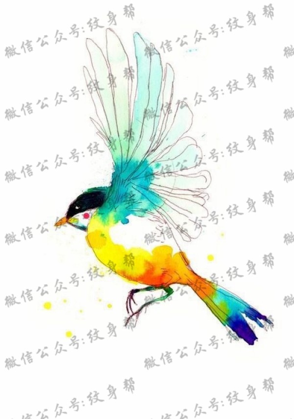 小鸟纹身手稿_10张漂亮的水彩纹身小鸟手稿图案