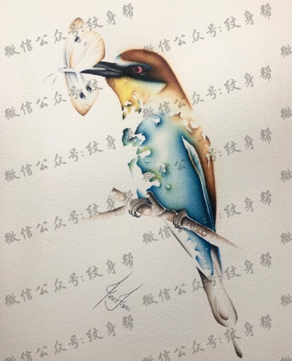 小鸟纹身手稿_10张漂亮的水彩纹身小鸟手稿图案