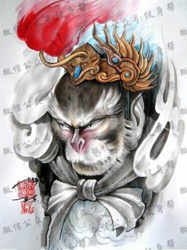 孙悟空手稿_16张纹身齐天大圣斗战胜佛孙悟空头像手稿图案
