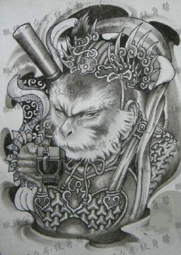 孙悟空手稿_16张纹身齐天大圣斗战胜佛孙悟空头像手稿图案