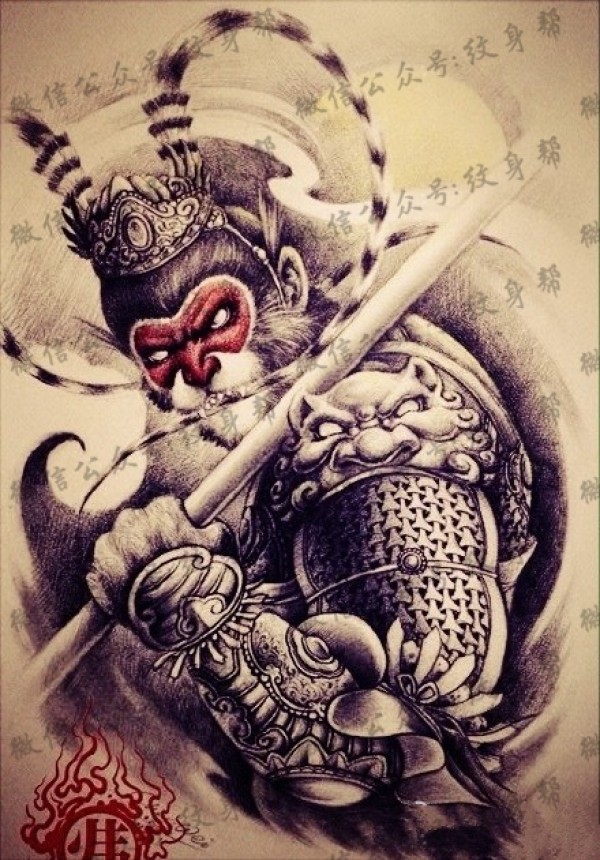 孙悟空手稿_16张纹身齐天大圣斗战胜佛孙悟空头像手稿图案