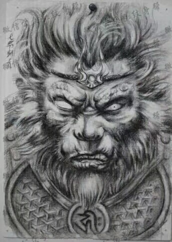 孙悟空手稿_16张纹身齐天大圣斗战胜佛孙悟空头像手稿图案