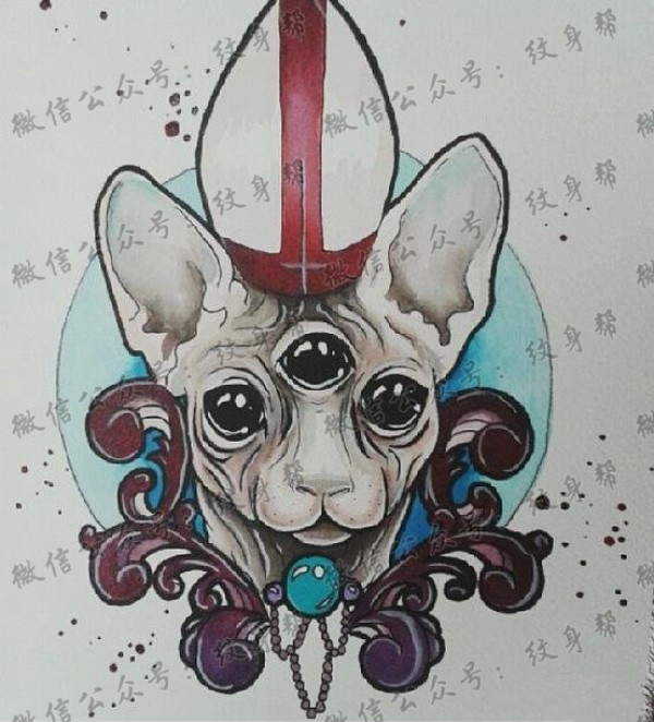 小清新猫头主题的一组猫神纹身素材手稿