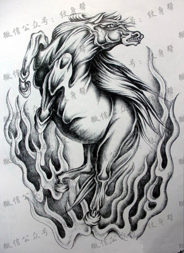 潮流的黑灰马纹身图案