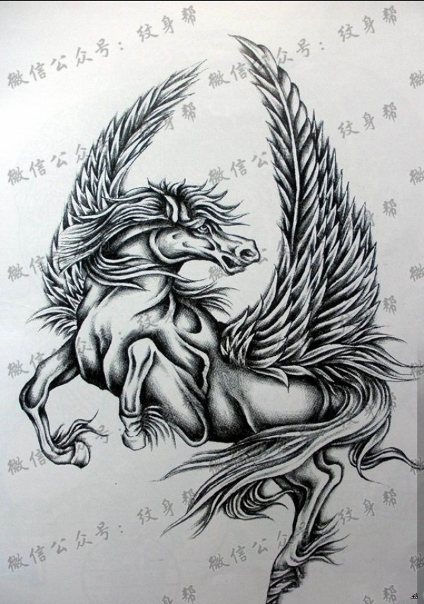 一款马翅膀纹身图案