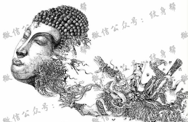 撕裂的佛头齐天大圣孙悟空纹身手稿图片