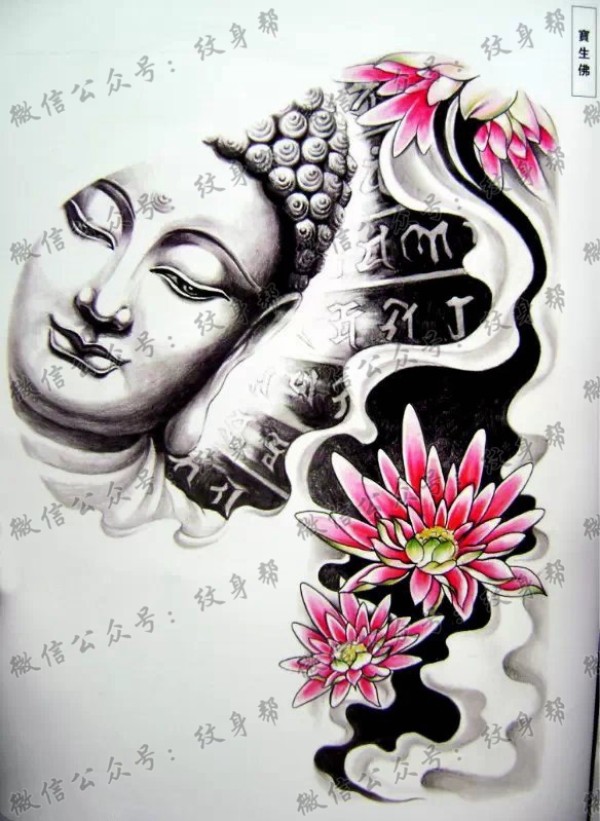 黑白半胛佛头纹身图案