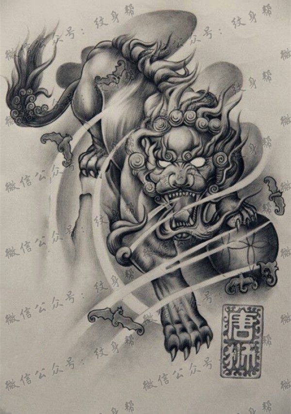生动的唐狮纹身手稿图案