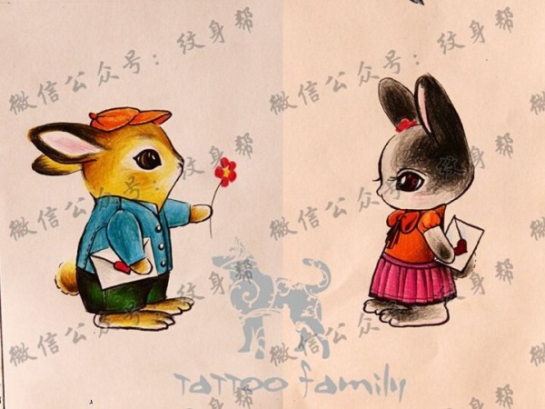 彩色的可爱卡通兔子纹身图案