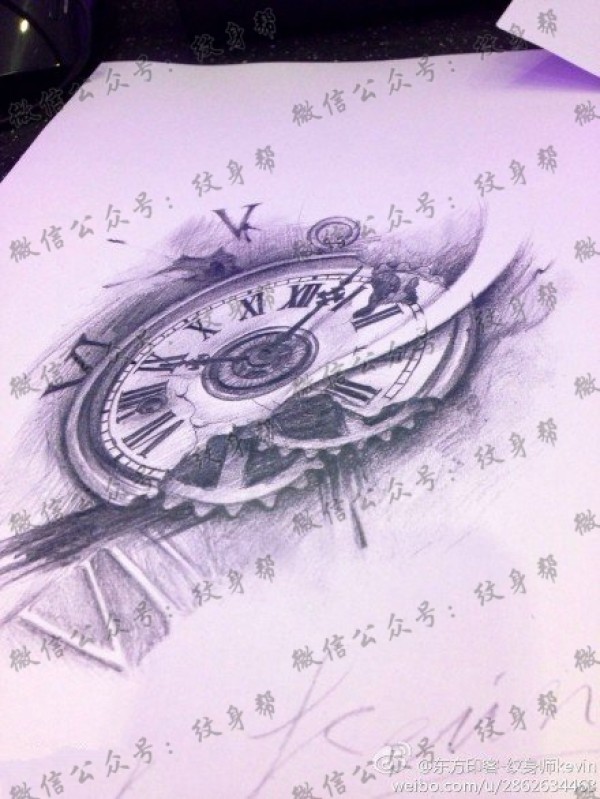 黑灰齿轮纹身手稿图案