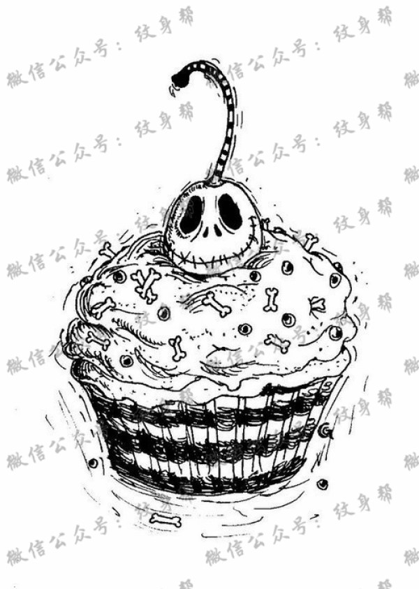 蛋糕骷髅头纹身手稿图案