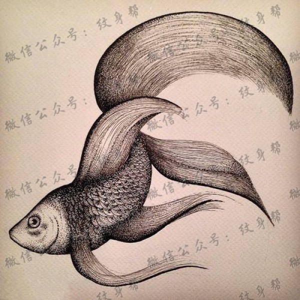 生龙活虎金鱼纹身手稿图案