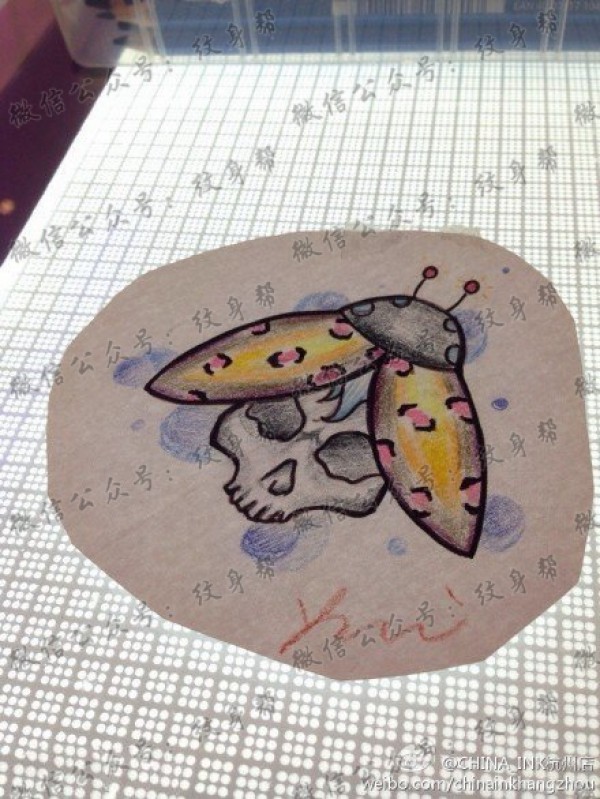 瓢虫帽子的骷髅君纹身图案