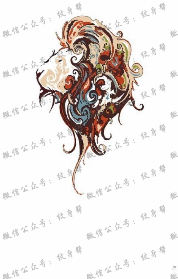 半甲唐狮手稿 传统的9款唐狮主题半甲纹身手稿图片