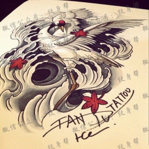 仙鹤纹身手稿图案