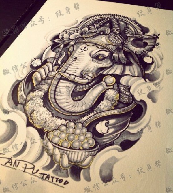 惟妙惟肖象神纹身手稿图案