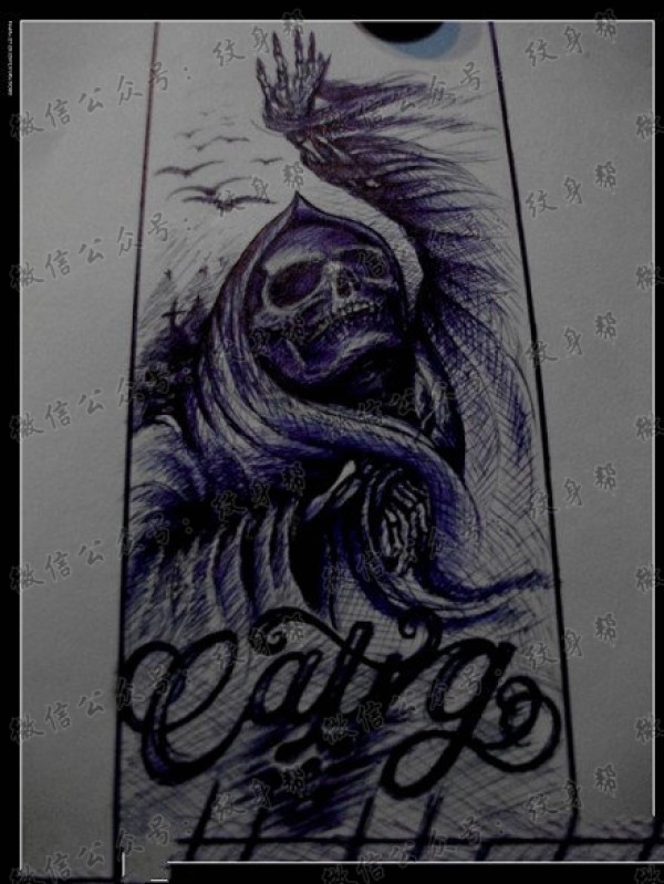 一组满背大气九龙拉棺纹身图案作品和手稿