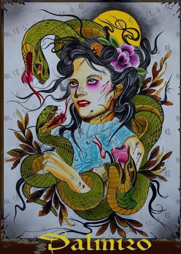 彩色school女郎蛇纹身图案