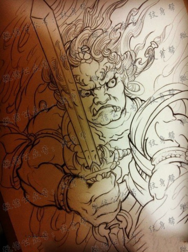 一组满背大气九龙拉棺纹身图案作品和手稿