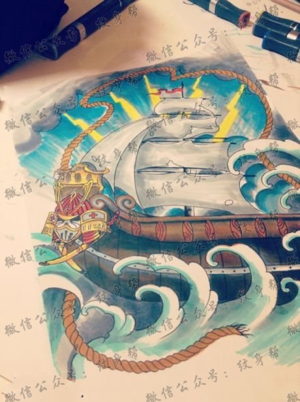 海贼王主题的9款路飞索隆等纹身手稿图片