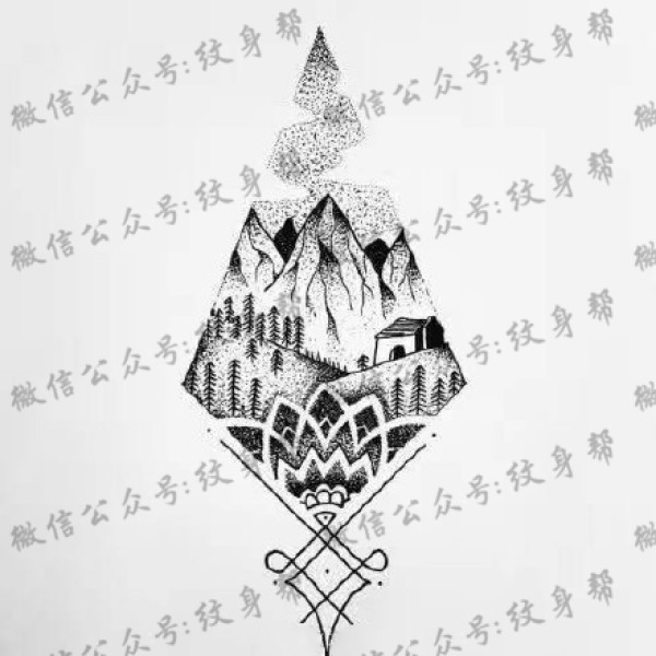 山脉纹身手稿_一组14张山脉风景几何设计手稿纹身图案