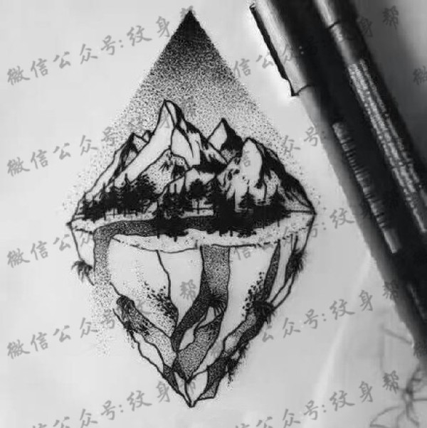 山脉纹身手稿_一组14张山脉风景几何设计手稿纹身图案