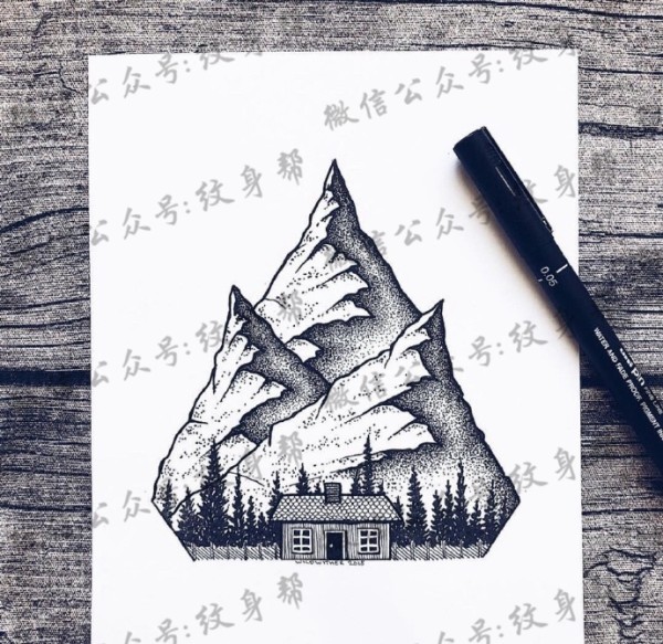 山脉纹身手稿_一组14张山脉风景几何设计手稿纹身图案