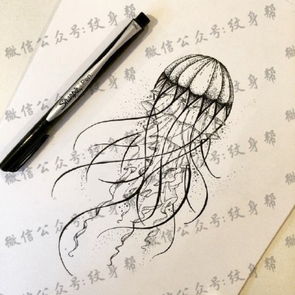 水母纹身手稿_一组47张优秀纹身水母手稿图案素材