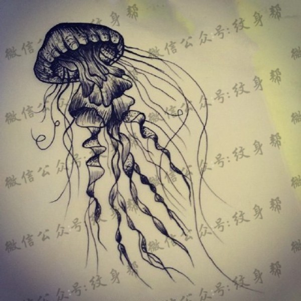 水母纹身手稿_一组47张优秀纹身水母手稿图案素材