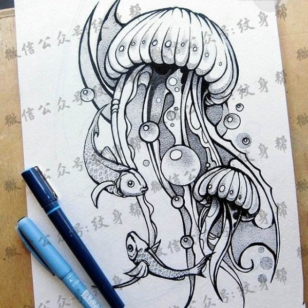 水母纹身手稿_一组47张优秀纹身水母手稿图案素材
