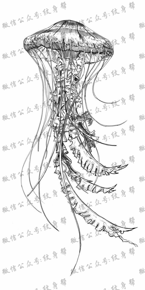 水母纹身手稿_一组47张优秀纹身水母手稿图案素材