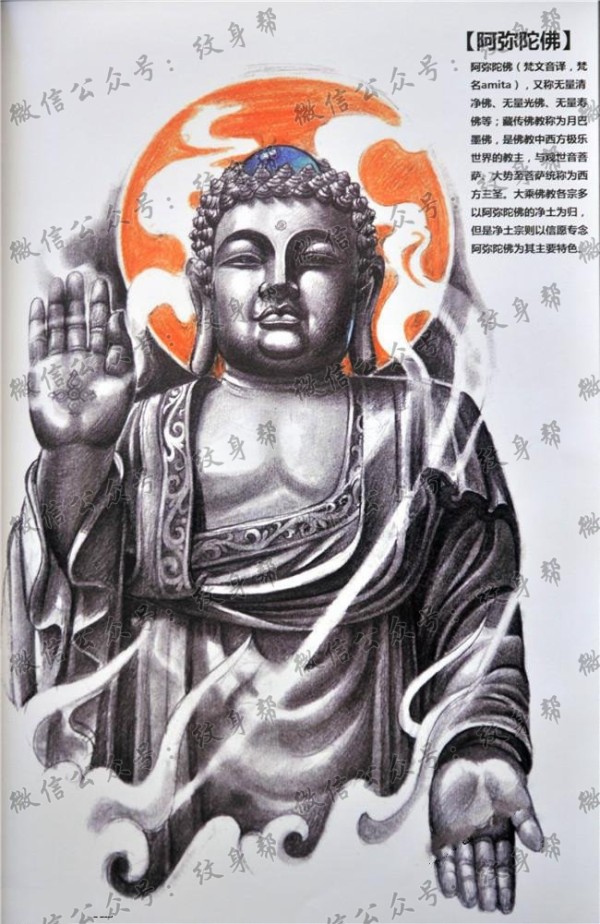 适合大臂佛祖手稿纹身图案