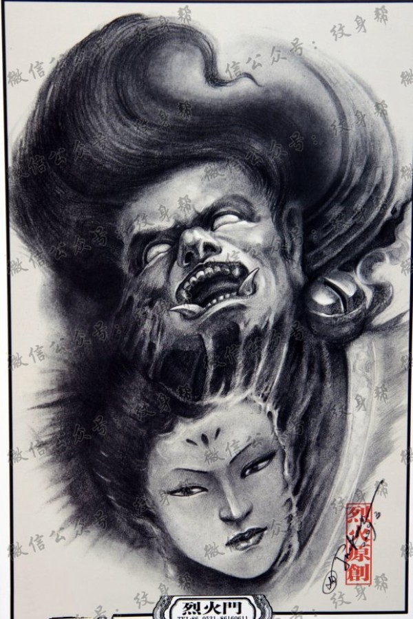 一组满背大气九龙拉棺纹身图案作品和手稿